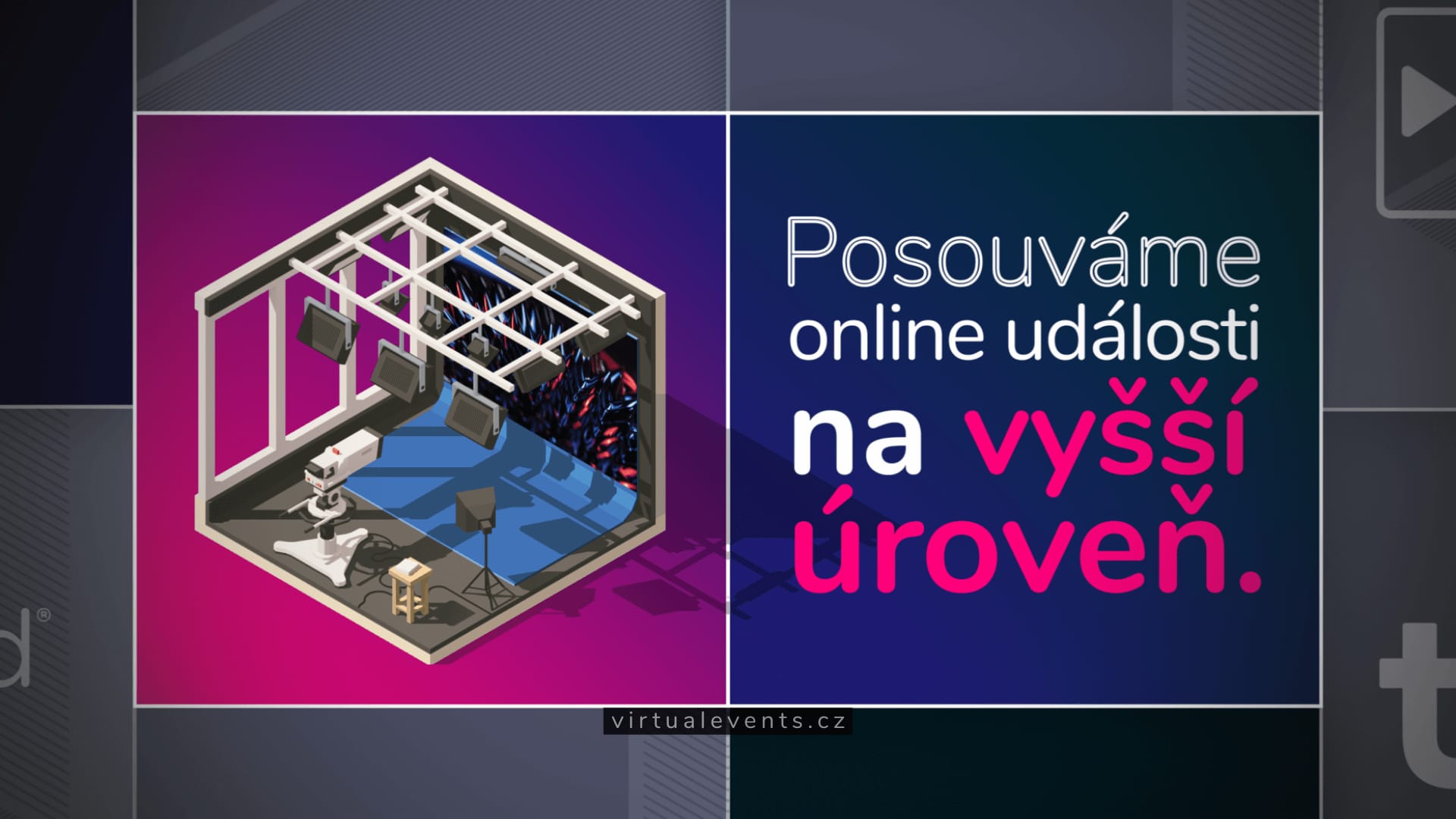 Současně vybavená studia a tým zkušených odborníků. Aktivní sledování konferencí z domácího prostředí Živá propojení do virtuálního studia